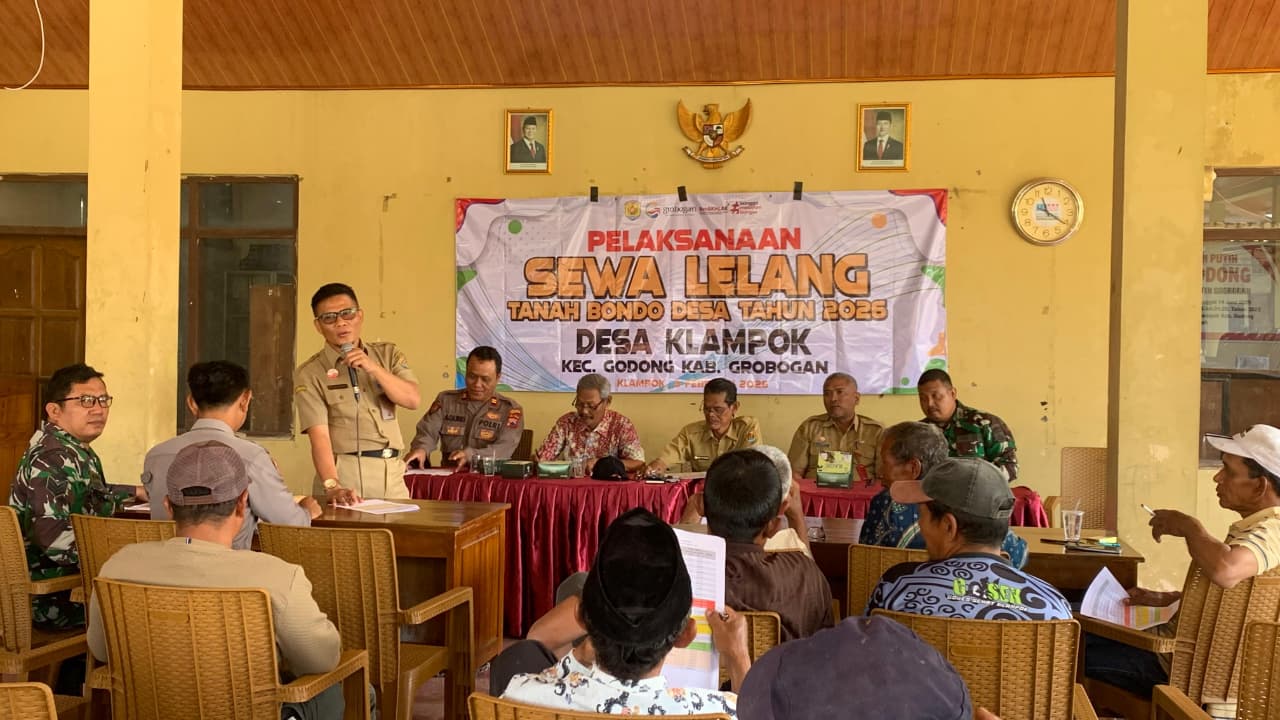 Pemerintah Desa Klampok, Kecamatan Godong, Kabupaten Grobogan, melaksanakan kegiatan Sewa Lelang Tanah Kas Desa (TKD) Tahun 2026 pada Selasa, 3 Februari 2026, bertempat di Balai Desa Klampok. Kegiatan ini berlangsung tertib, lancar, dan transparan dengan dihadiri berbagai unsur terkait.